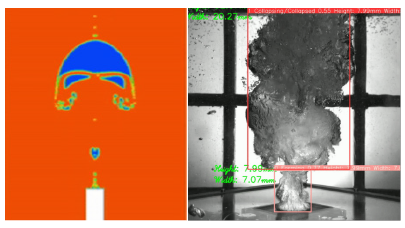 A VOF (Volume of Fluid) model was developed to examine thermodynamic interactions, validated by matching temperature fluctuation frequencies with physical model data. This model now aids in analysing turbulent viscosity and velocity profiles within the melt.